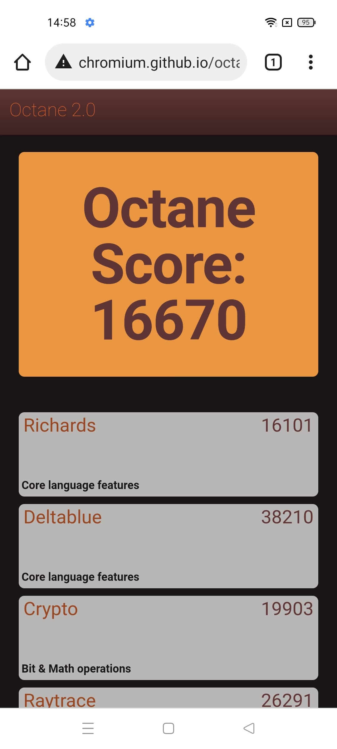 | Google Octane 2 (больше — лучше) | 16670 | 19887 | 19928 | 18041 | 16378 |