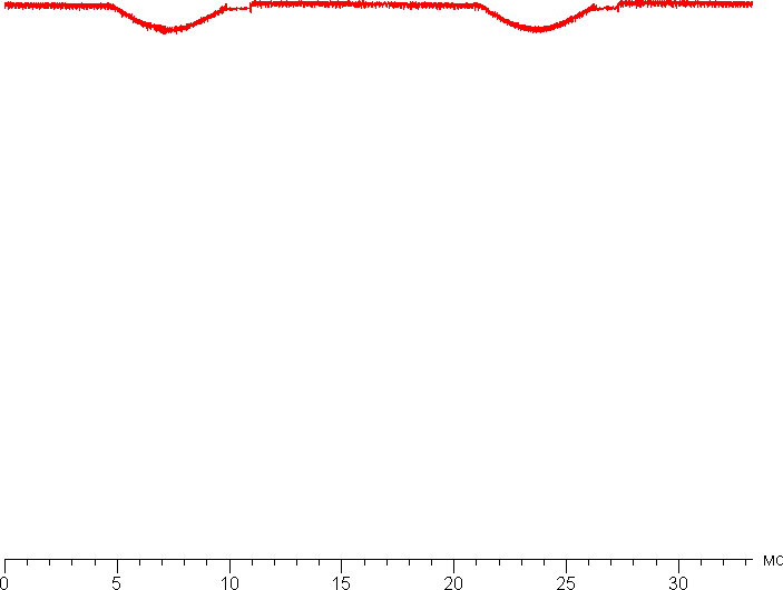 На графике зависимости яркости (вертикальная ось) от времени (горизонтальная ось) определяется выраженная модуляция с частотой 60 Гц, но амплитуда ее небольшая, поэтому мерцания не видно.