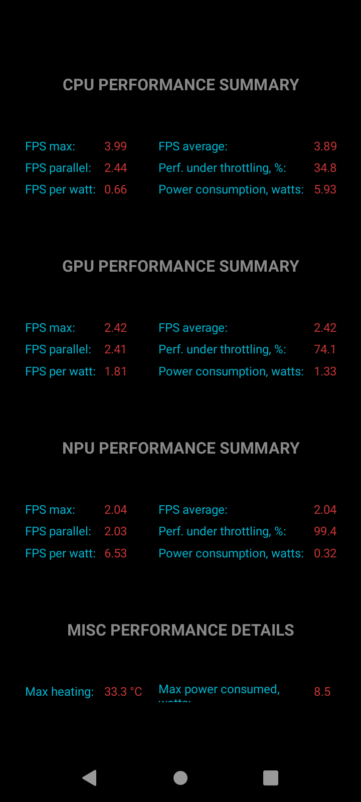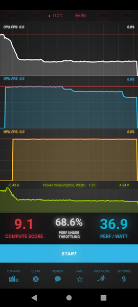 Тест на снижение производительности при нагреве мы проводим с помощью программы Burnout Benchmark, которая позволяет нагружать CPU, GPU и NPU: