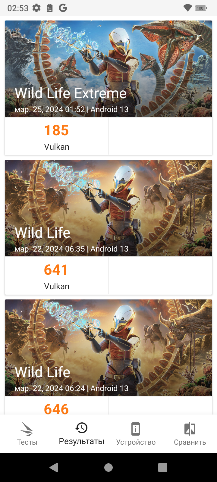 | 3DMark Wild Life Vulkan (больше — лучше) | 646 | 1509 | 1252 | 1224 | 2450 |