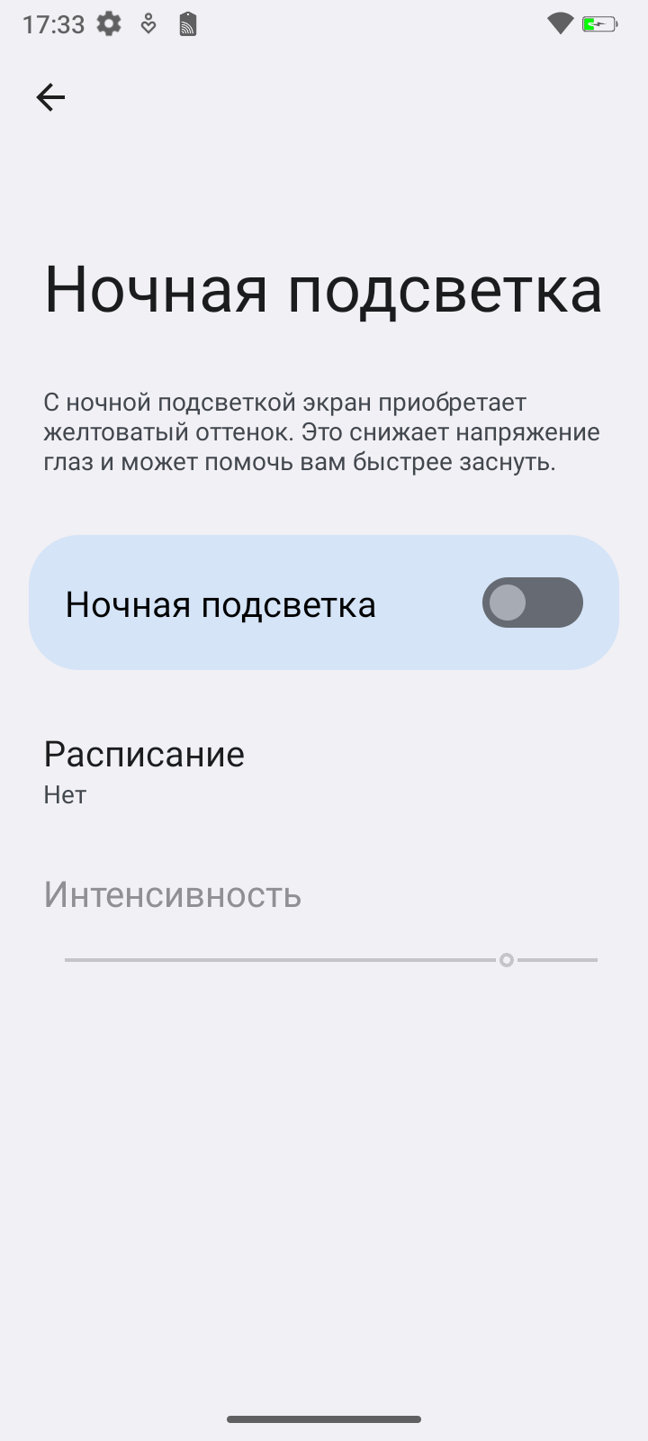 В принципе, яркий свет может приводить к нарушению суточного (циркадного) ритма (см. статью про iPad Pro с дисплеем 9,7 дюйма), но все решается снижением яркости до низкого, но еще комфортного уровня, а искажать цветовой баланс, уменьшая вклад синего, нет абсолютно никакого смысла. Эту настройку бесполезно использовать для коррекции цветового баланса, так как даже на минимальной коррекции цветовая температура ниже стандартных 6500 К (а именно 5300 К). Разумнее просто оставить профиль Натуральные, так как при этом обеспечивается максимальная яркость.