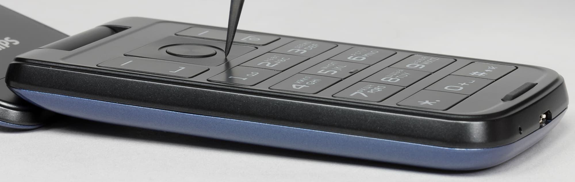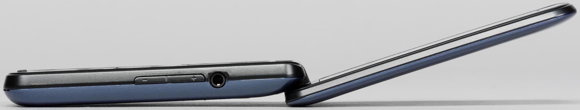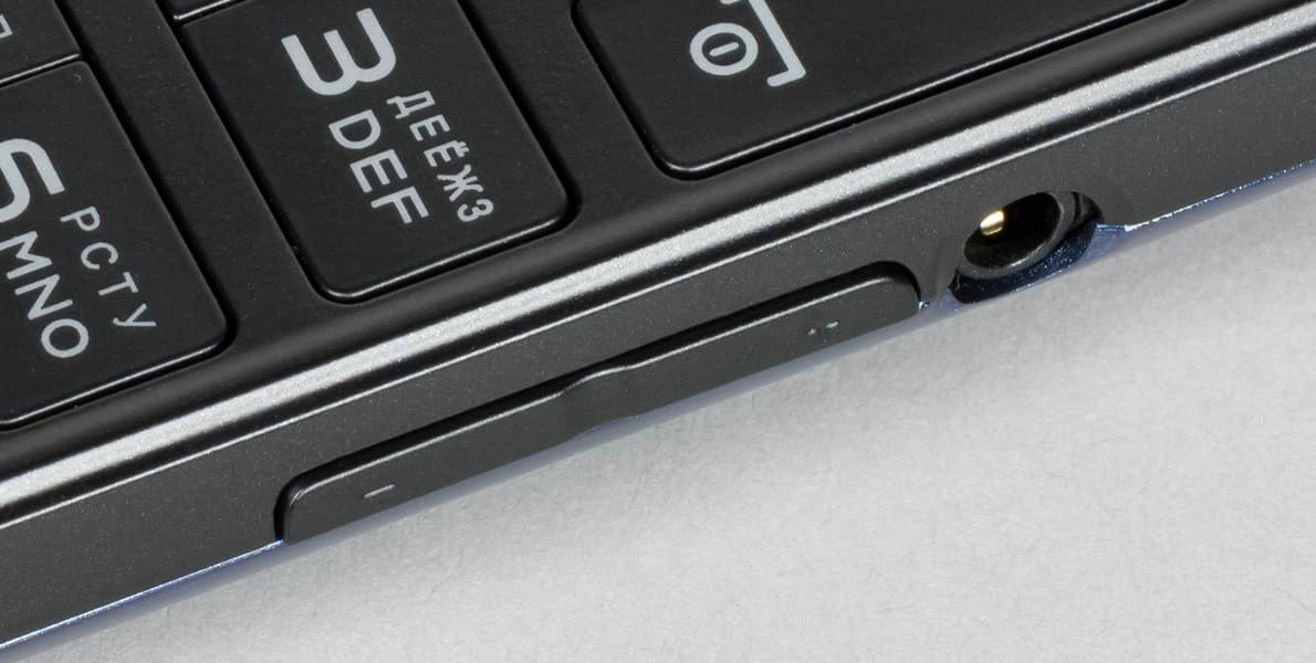 В торец в данном случае вывели лишь разъем Micro-USB и разговорный микрофон. Защиты от пыли и влаги корпус телефона не получил. Цвет корпуса — лишь один, синий.