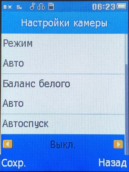 Настройки небогатые: можно выбирать качество фото и видео из представленных разрешений, есть выбор сюжетного режима между автоматическим или ночным, а также установка баланса белого по пресетам без возможности выставления желаемой цветовой температуры. Нет ни настроек контрастности, ни цветовых эффектов, которые куда нужнее, чем предоставленный пользователю выбор баланса белого между «флуоресцентным» и «вольфрамом». Интересно, кто-то вообще этим пользуется в телефонах?