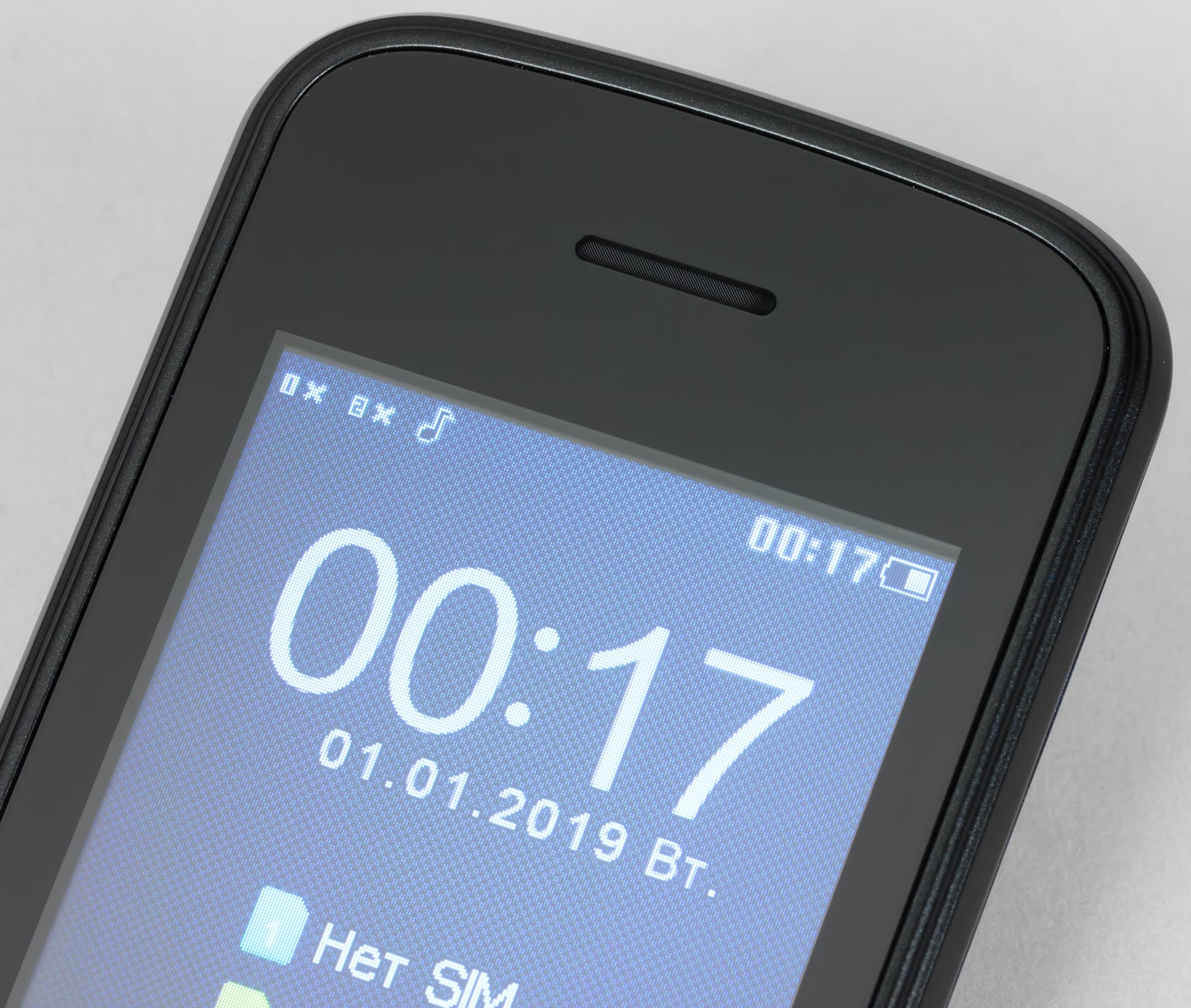 В компактном корпусе уместился цветной экран диагональю 2,4 дюйма и крупные клавиши набора с подсветкой. Всего на передней панели установлена 21 механическая кнопка, одна из них вписана внутрь четырехпозиционного переключателя, две по бокам от нее выполнены в виде качелей. Клавиши имеют в меру упругий ход, не слишком жесткий, но и не невнятный.