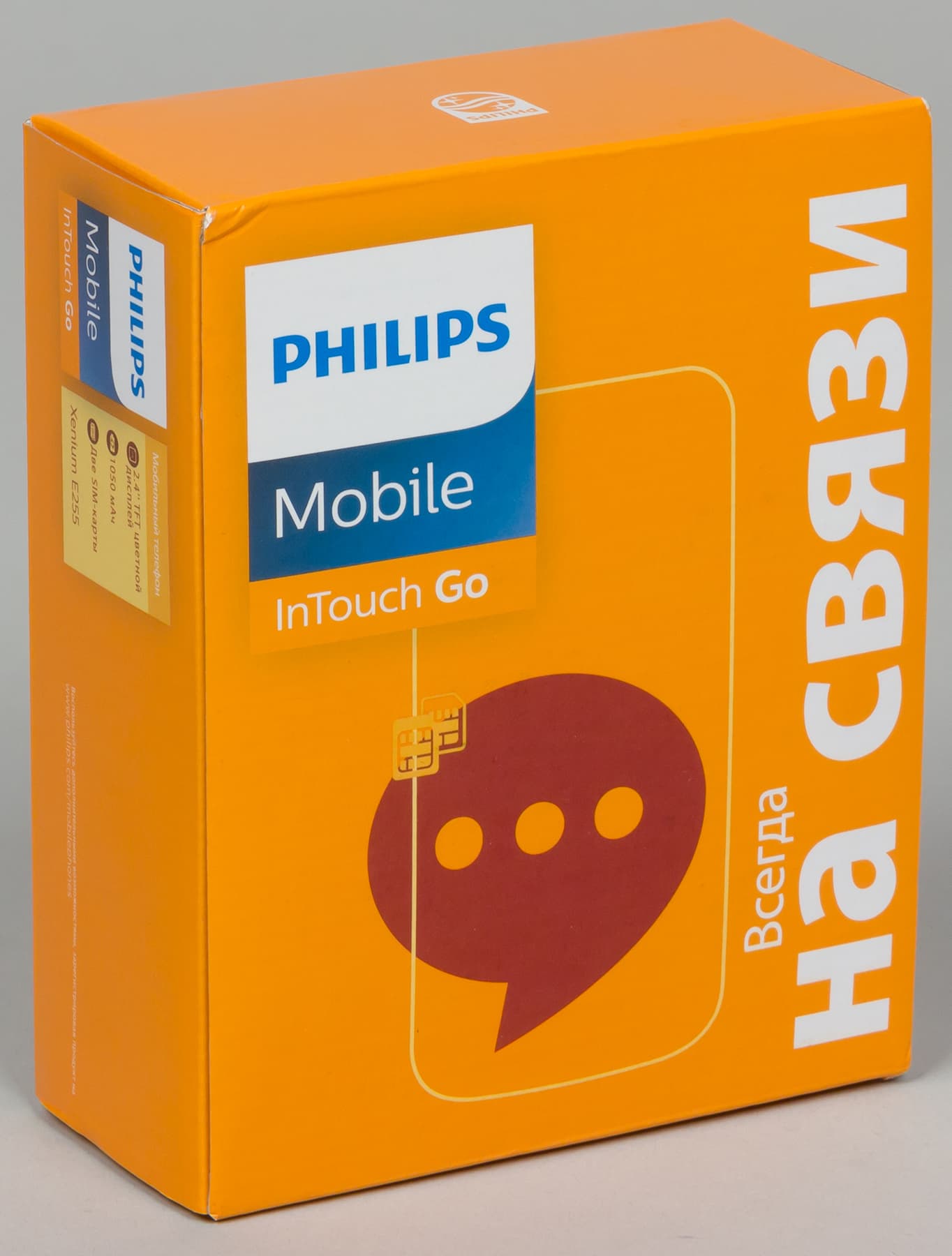 Philips Xenium E255 поставляется в небольшой аккуратно выполненной картонной коробке, ярко и привлекательно оформленной. В комплект поставки входит сетевой адаптер для зарядки со впаянным кабелем Micro-USB, а также съемная аккумуляторная батарея и бумажные документы.