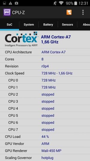 - SoC MediaTek MT6592, 1,7 ГГц, 8 ядер, ARM Cortex-A7