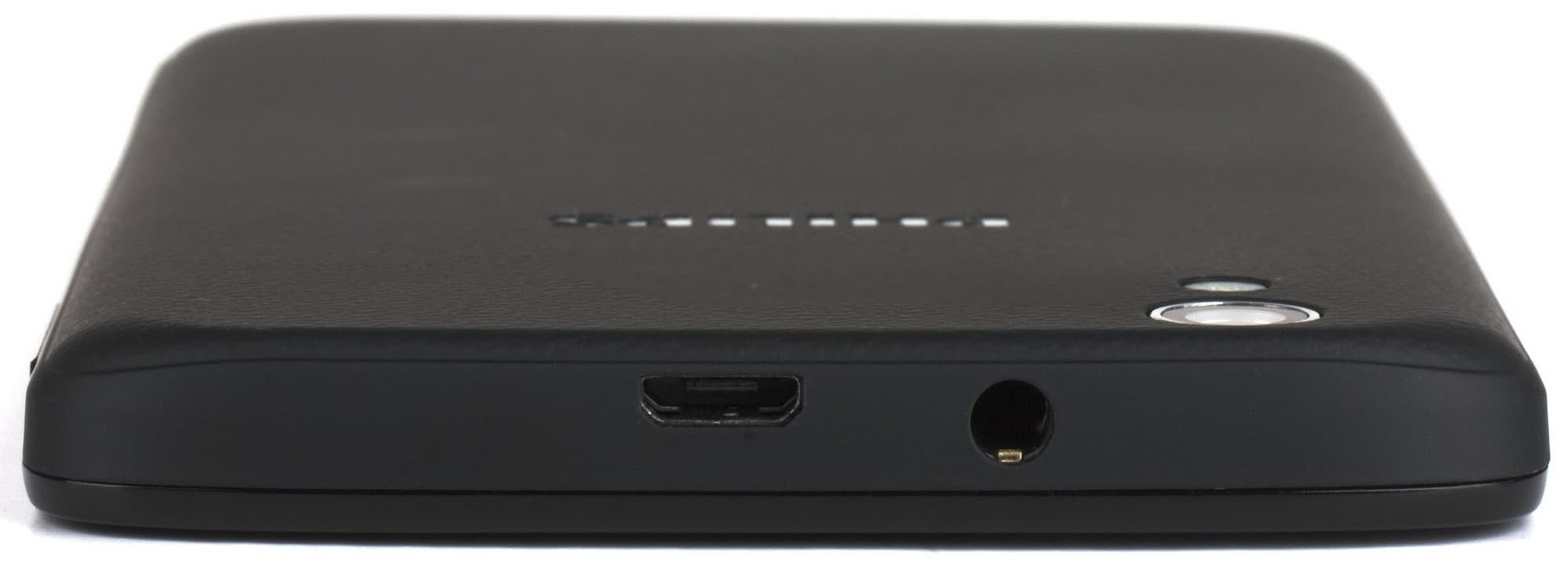 Оба стандартных универсальных разъема — Micro-USB и аудиовыход для наушников 3,5 мм — размещены на верхнем торце корпуса устройства. Расположены они очень близко друг к другу — со штекерами сторонних аксессуаров могут возникнуть проблемы, хотя со штатными их нет.