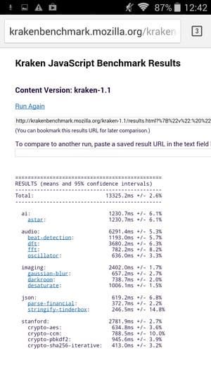Что касается бенчмарков для оценки скорости движка javascript, то стоит всегда делать скидку на то, что в них результаты существенно зависят от браузера, в котором запускаются, так что сравнение может быть истинно корректным только на одинаковых ОС и браузерах, а такая возможность имеется при тестировании не всегда. В случае с ОС Android мы всегда стараемся использовать Google Chrome.
