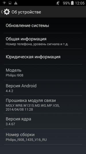 Philips Xenium I908 работает в данный момент на программной платформе Google Android версии 4.4.2 KitKat. Производитель не устанавливал никаких альтернативных оболочек, так что организация всех меню, рабочих столов и функциональность панели уведомлений здесь точно такие же, как в «стоковой» Google Android ОС. В смартфоне лишь перерисованы иконки темы, которая установлена по умолчанию, никаких других изменений нет. Из сторонних приложений в аппарате предустановлены диспетчер файлов и офисный пакет Kingsoft (WPS) Office.