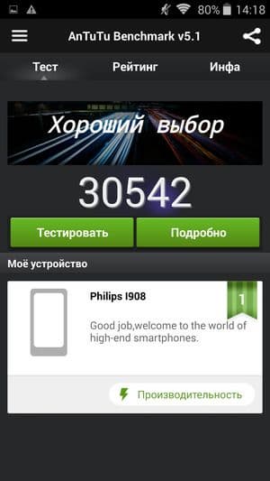 Несмотря на некоторые несоответствия заявленных характеристик смартфона его реальным возможностям (проблемы с распознаванием спутников Глонасс, батарея иного типа), а также далеко не рекордную автономность, что идет в разрез с заявленной принадлежностью к «долгоиграющей» серии Xenium, аппарат, тем не менее, по совокупности технических характеристик получился достаточно интересным. У него аккуратный и практичный, хоть и не слишком выразительный дизайн, хороший по качеству и разрешению крупный экран, мощная аппаратная платформа с достойной производительностью, и к тому же смартфон поддерживает работу с двумя SIM-картами. С другой стороны, не видно, чем Philips Xenium I908 оправдывает немалую цену, по которой устройство официально продается на российском рынке (на момент публикации обзора она составляла около 14 тысяч рублей). У смартфона нет ни малейшего намека на присутствие дополнительных функций, которые обычно выводят мобильный аппарат на такой ценовой уровень: здесь нет собственного пользовательского интерфейса, поддержки жестов, USB OTG, LTE, второго диапазона Wi-Fi, влагозащиты и много чего еще. Перечислять можно долго, так что достаточно просто констатировать, что несмотря на весьма неплохую аппаратную базу смартфону не хватает массы тех мелочей, которые делают работу с мобильным устройством по-настоящему комфортной, а аппарат переводят в категорию продвинутых. Без них столь высокая заявленная цена видится весьма завышенной и не соответствующей истинному уровню смартфона.
