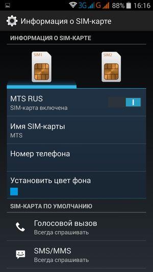 Смартфон поддерживает работу с двумя SIM-картами, и в целом работа с ними в меню организована по знакомому принципу: можно любую из SIM-карт назначить основной для организации голосовых звонков, передачи данных или отправки SMS-сообщений; при наборе номера также можно выбрать желаемую карту в контекстном подменю. С сетями 3G может работать SIM-карта в любом слоте, однако одновременно в этом режиме может функционировать лишь одна из карт. Для смены назначений слотов карточки менять местами не требуется — это можно сделать прямо из меню телефона. Работа с двумя SIM-картами организована по привычному стандарту Dual SIM Dual Standby, когда обе карты могут находиться в активном режиме ожидания, но одновременно работать не могут — радиомодуль здесь только один.
