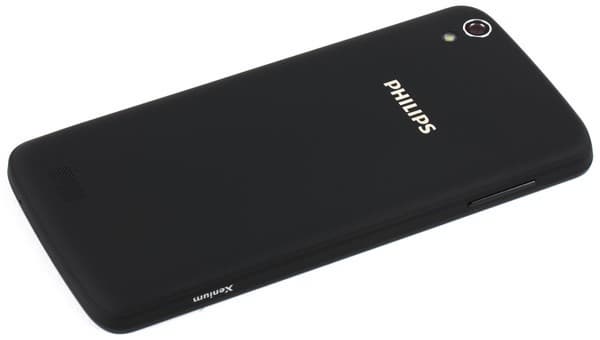 Дизайн смартфона очень прост, ничего особенного во внешности Philips Xenium I908 нет, однако аппарат вышел на удивление приятным на вид. Очевидно, тут хорошо подошли друг к другу все составляющие: и аккуратный дизайн, и материалы корпуса, и их цвет, и габариты с массой. Смартфон при своих внушительных пяти дюймах экрана получился некрупным, он прекрасно помещается в ладони. Правда, за счет своей немалой массы, обусловленной объемной аккумуляторной батареей, аппарат ощущается в руке достаточно увесистым.
