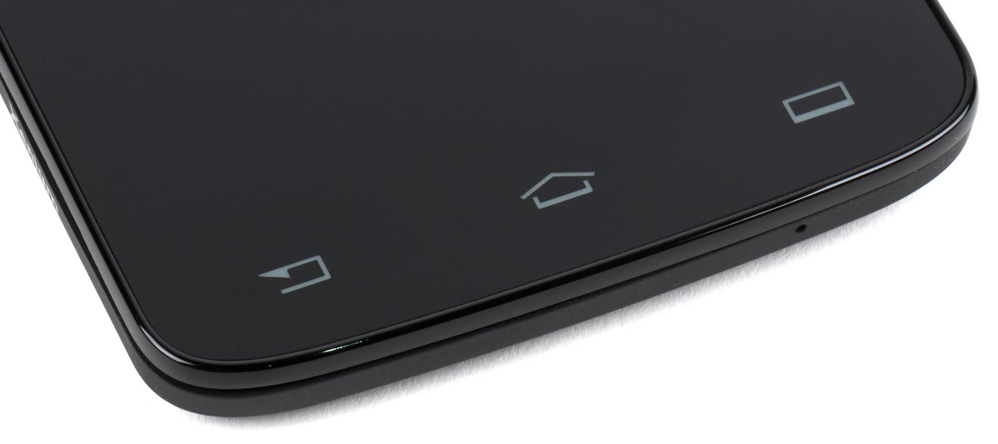 Ниже, под экраном, располагается традиционный ряд из аппаратных кнопок управления системой и приложениями. Все кнопки, естественно, сенсорные, они имеют очень неяркую, но вполне достаточную для различения в полумраке подсветку голубоватого цвета. Повлиять как-либо на длительность и режимы работы подсветки с помощью настроек не представляется возможным.