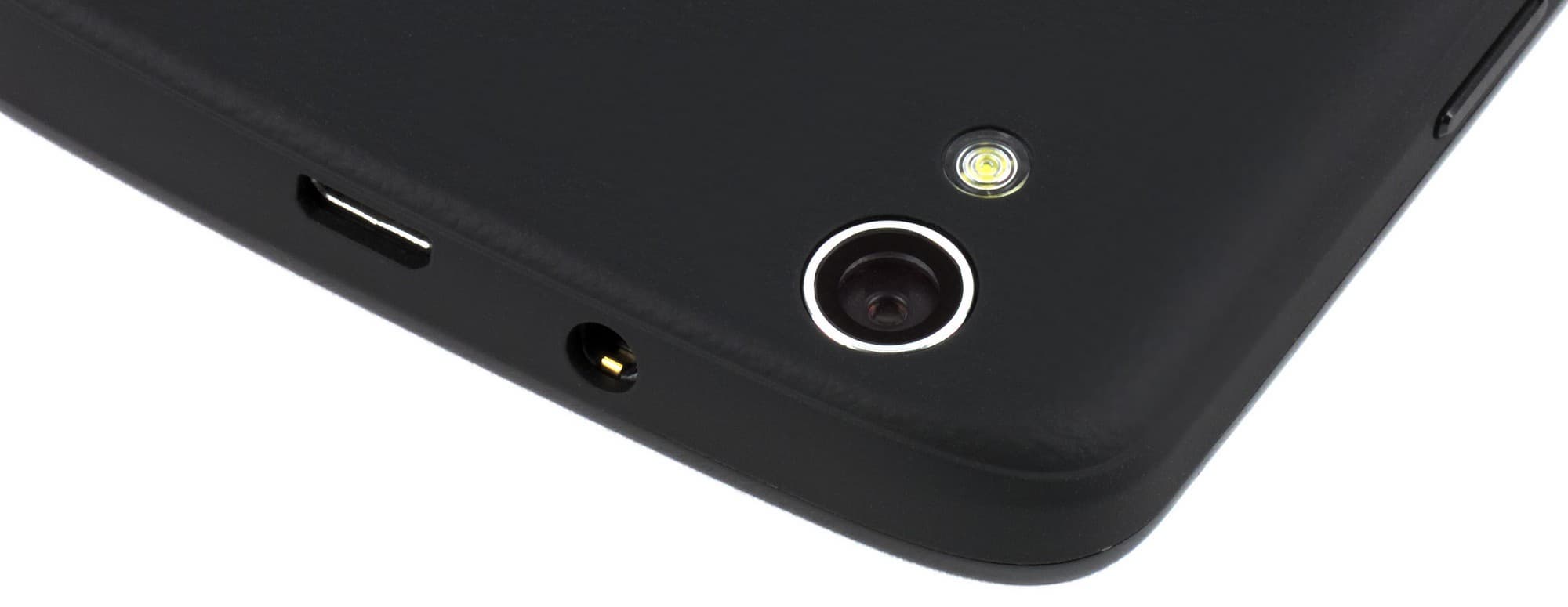 Разъем Micro-USB здесь не поддерживает режим подключения внешних устойств (USB OTG). Никаких заглушек на своих разъемах смартфон не имеет, так как не оборудован защитой от воды и грязи. Не найти здесь и крепления для ремешка.