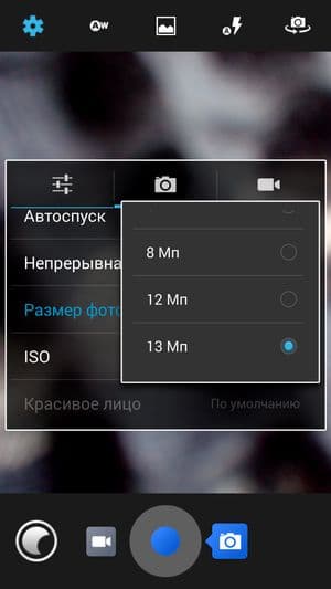 Основная, тыловая камера оснащена 13-мегапиксельным модулем Sony Exmor RS с BSI-сенсором и автофокусом, а также оборудована односекционной LED-вспышкой и может снимать видео в разрешении 1080р. Здесь также нельзя делать фотоснимки во время видеосъемки. Меню настроек классическое, знакомое по другим смартфонам на системе Android, в которых производитель не устанавливал никаких альтернативных оболочек. Разделы меню интуитивно легко находятся, все надписи крупно и четко прорисованы, пользоваться камерой вполне комфортно даже при ярком солнечном освещении.