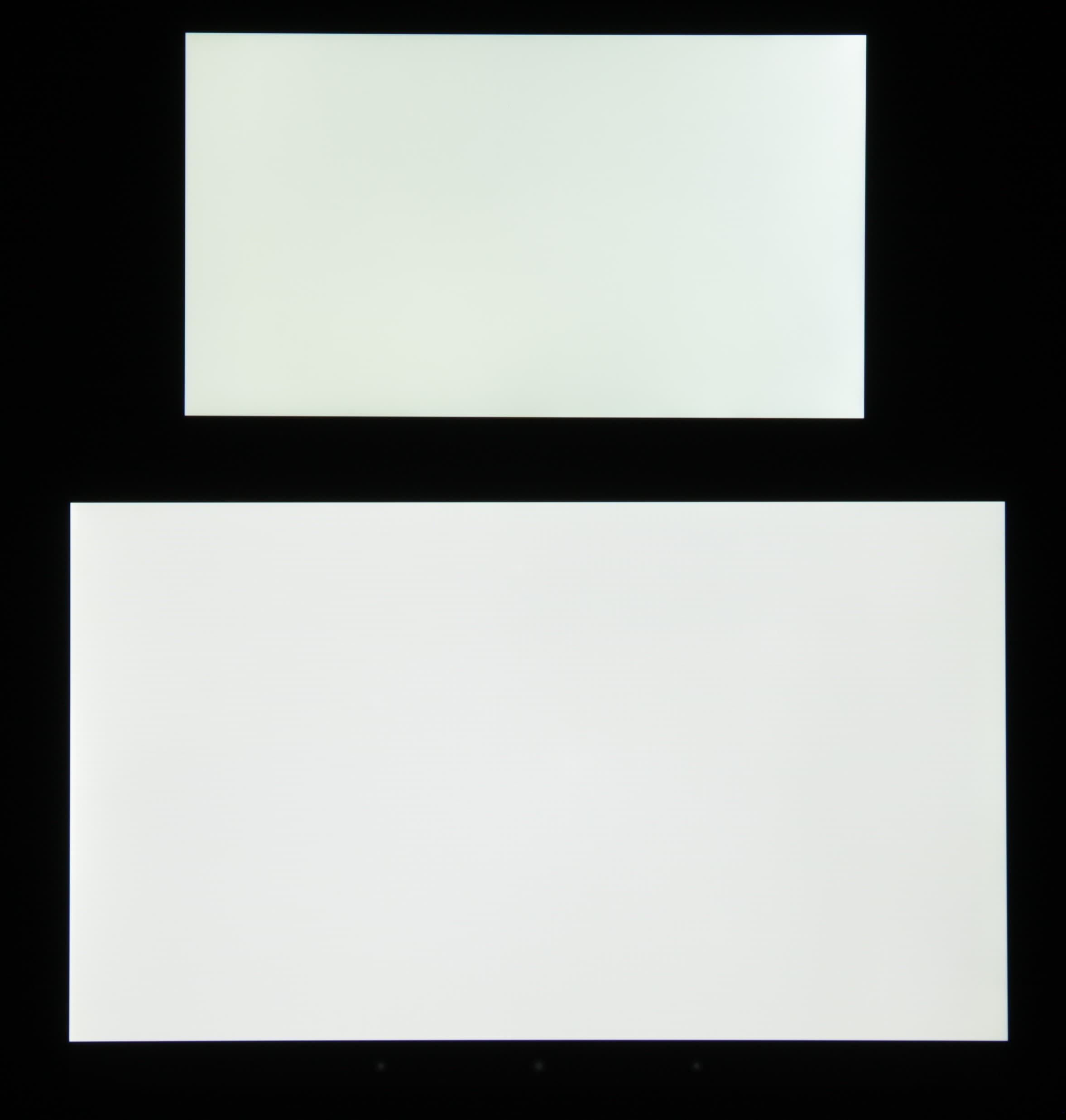 При ручном управлении яркостью и при выводе белого поля во весь экран максимальное значение яркости составило около 370 кд/м², минимальное — 44 кд/м². Максимальная яркость достаточно высокая, и, учитывая отличные антибликовые свойства, читаемость даже в солнечный день вне помещения будет на приемлемом уровне. В полной темноте яркость можно понизить до комфортного значения. В наличии автоматическая регулировка яркости по датчику освещенности (находится в правом верхнем углу на фронтальной панели). В автоматическом режиме при изменении внешних условий освещенности яркость экрана как повышается, так и понижается. В полной темноте функция автояркости уменьшает яркость до 44 кд/м² (нормально), в условиях освещенного искусственным светом офиса (примерно 400 лк) устанавливает на 150 кд/м² (подходит), в очень ярком окружении (соответствует освещению ясным днем вне помещения, но без прямого солнечного света — 20000 лк или немного больше) повышает до 370 кд/м² (до максимума, как и нужно). В итоге функция автоподстройки яркости работает абсолютно адекватно. На любом уровне яркости модуляция подсветки практически отсутствует, поэтому нет и никакого мерцания экрана.