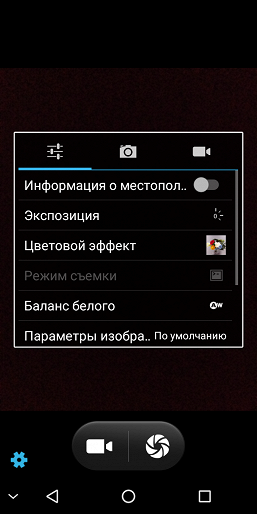 Интерфейс управления камерой хорошо знаком по мобильным аппаратам на платформах MediaTek, поставляемым без собственных оболочек. Это простенькое меню разбито на три вкладки, где можно выбрать разрешение для фото-, но не для видеосъемки (для видео имеются лишь «определения»: низкое, среднее, высокое и хорошее). Также можно выбирать из массы сценических режимов или вручную выставлять светочувствительность, баланс белого, экспокоррекцию, резкость, яркость и контрастность. Имеется даже режим HDR, а вот штатной возможности сохранения снимков в RAW нет.