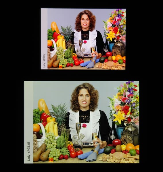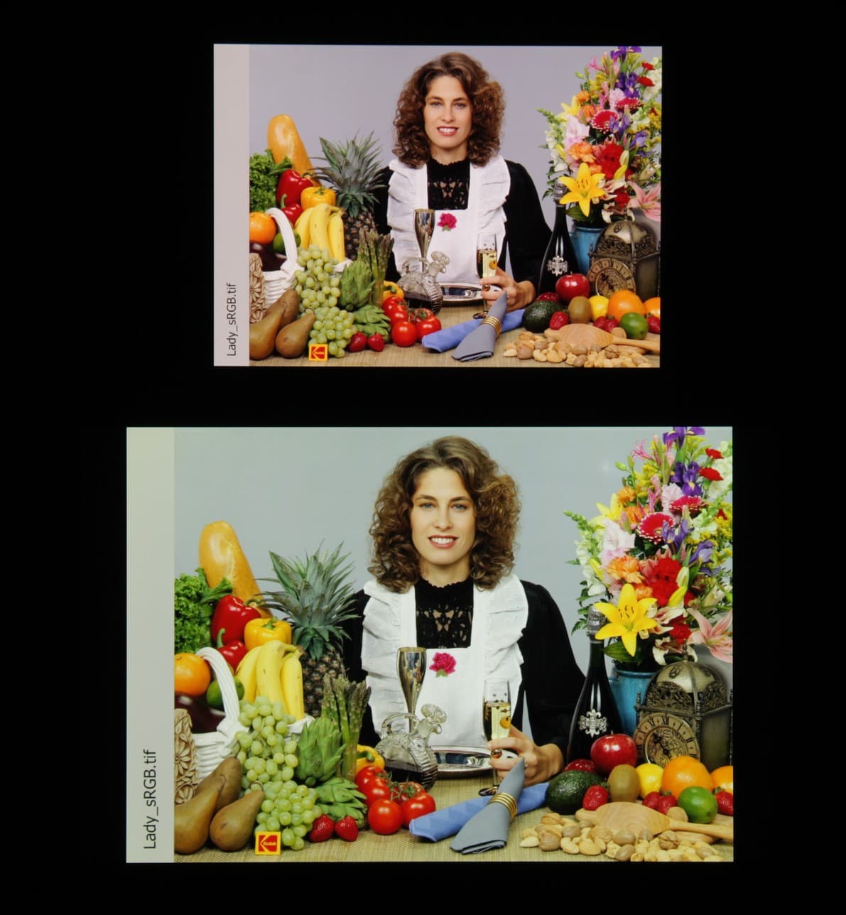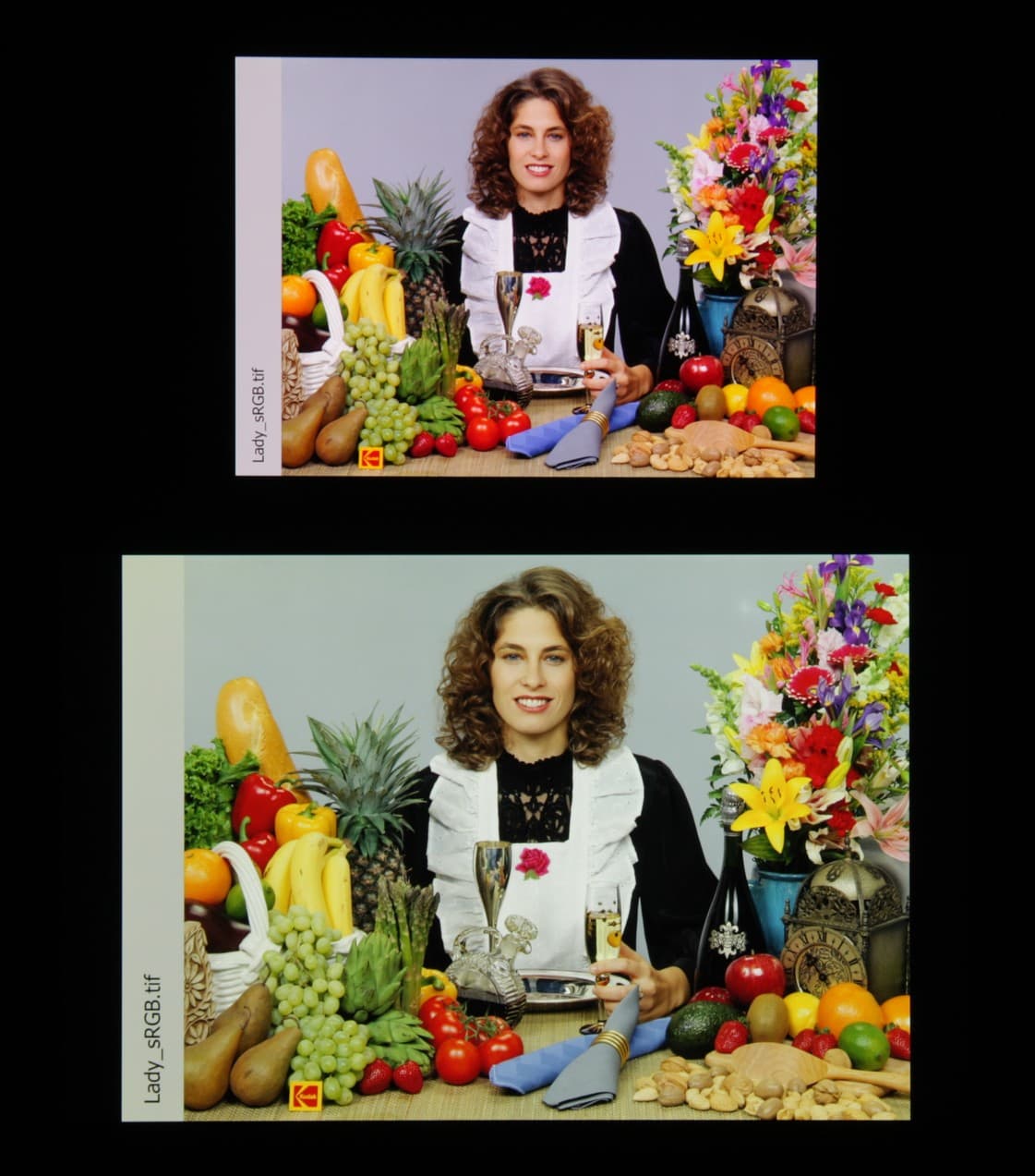 Отметим, что на экранах с широким цветовым охватом без соответствующей коррекции цвета обычных изображений, оптимизированных для устройств sRGB, выглядят неестественно насыщенными. Отсюда и рекомендация: в большинстве случаев смотреть кино, фотографии и все естественное лучше при выборе профиля Исходные оттенки цветов. Профиль Яркий уместен при просмотре материала с охватом DCI-P3, принятым в цифровом кинематографе, но в быту встречающимся редко.
