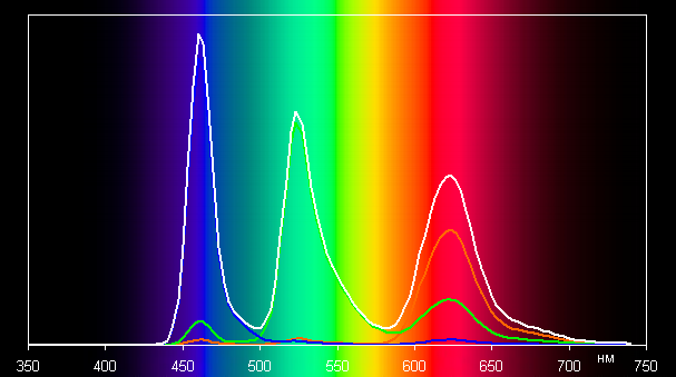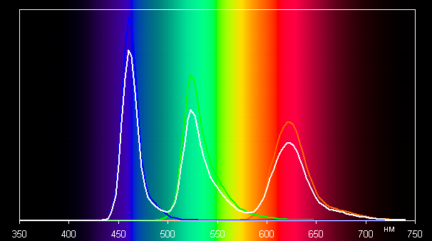 При выборе профиля Исходные оттенки цветов баланс оттенков на шкале серого приемлемый, поскольку цветовая температура близка к стандартным 6500 К, а отклонение от спектра абсолютно черного тела (ΔE) на большей части шкалы серого ниже 10, что для потребительского устройства считается неплохим показателем. При этом цветовая температура и ΔE мало изменяются от оттенка к оттенку — это положительно сказывается на визуальной оценке цветового баланса. (Самые темные области шкалы серого можно не учитывать, так как там баланс цветов не имеет большого значения, да и погрешность измерений цветовых характеристик на низкой яркости большая.)