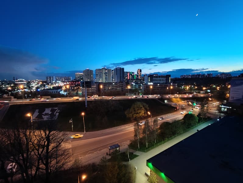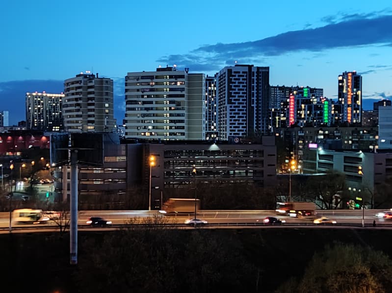 При съемке ночью ИИ высветляет снимок, задирая экспозицию и искажая цветопередачу. Картина становится неестественной, не похожей ни на ночную, ни на дневную. Может быть, это пригодится при съемке огней большого города, но в остальных ситуациях ночью с этой камерой делать нечего. Это же касается и широкоугольного модуля.
