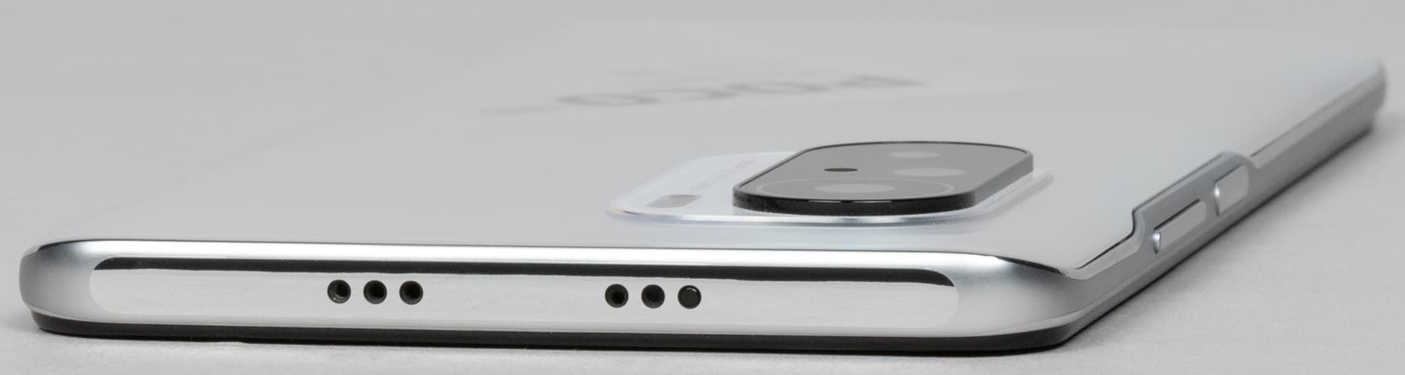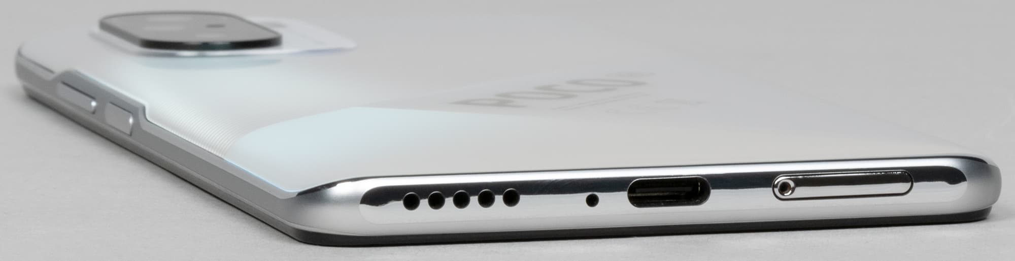 Корпус Poco F3 выполнен в едином для всех современных моделей ряда стандарте с относительно широкими гранями без заметных заужений. Здесь, впрочем, грани менее широкие, чем у других Poco, но все равно аппарат не смотрится обтекаемым, легким, тонким и воздушным. Наоборот, он довольно объемный, грузный и массивный, хотя и не лишен внешней привлекательности.