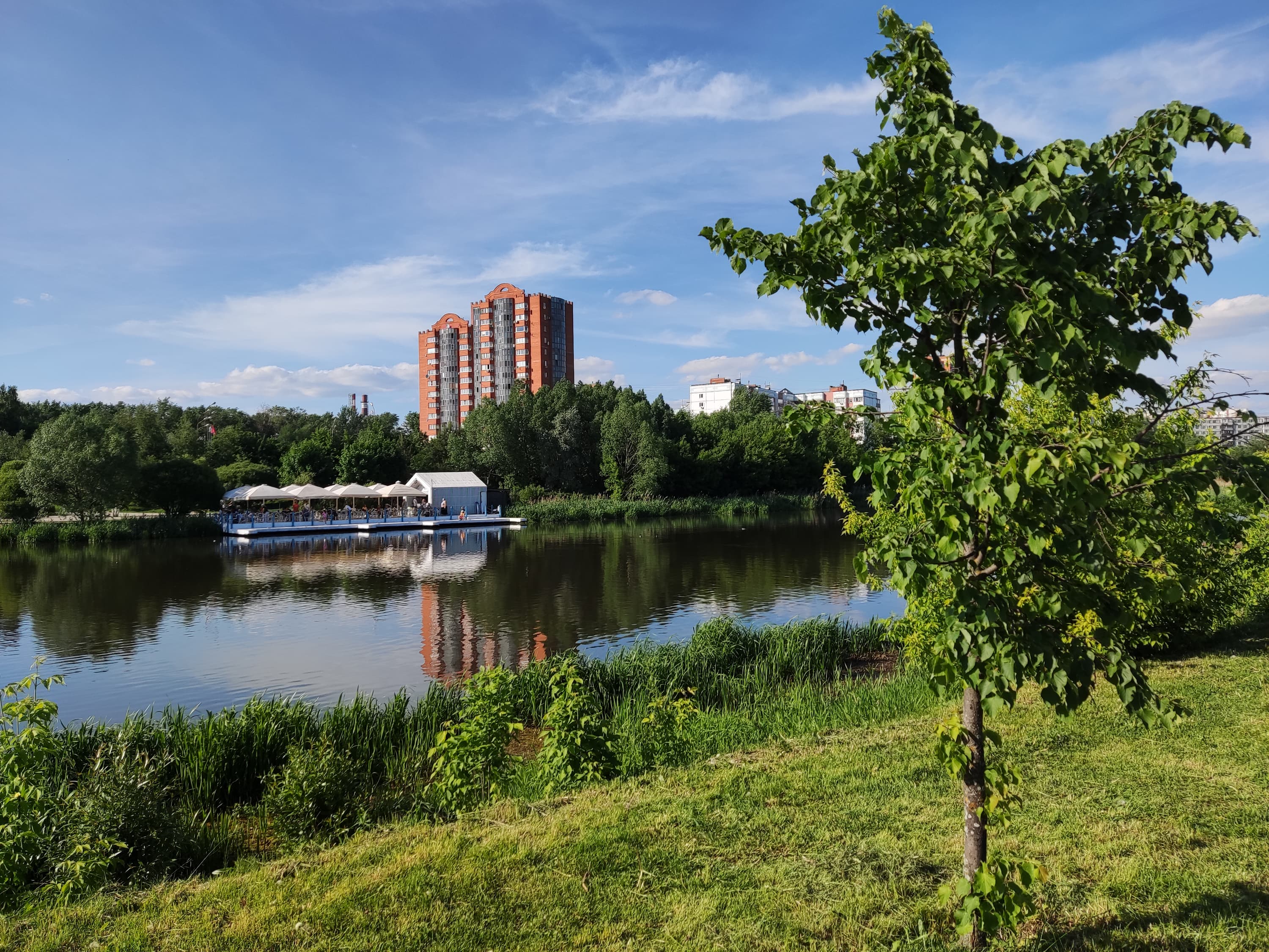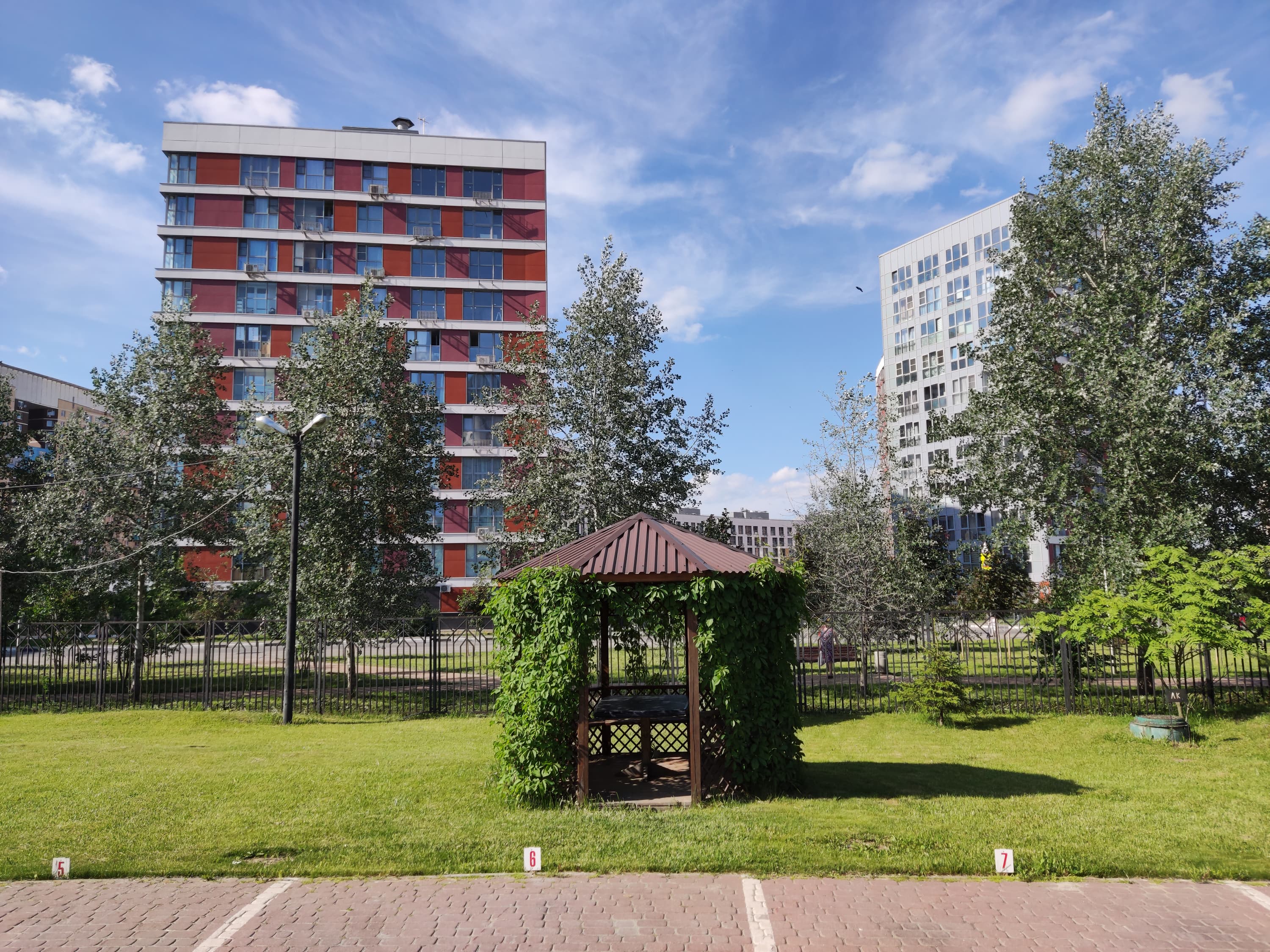 При дневном освещении широкоугольный модуль выдает качество ожидаемо более низкое, чем основная камера. Картинка не совпадает по балансу белого, выглядит гораздо более теплой, но и более темной. Но в целом широкоугольный модуль здесь далеко не самый плохой.