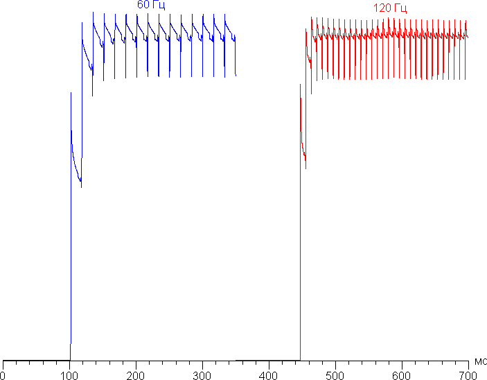 В режиме 120 Гц плавность прокрутки списков в меню заметно повышается. Посмотрим, изменится ли при этом характер модуляции: