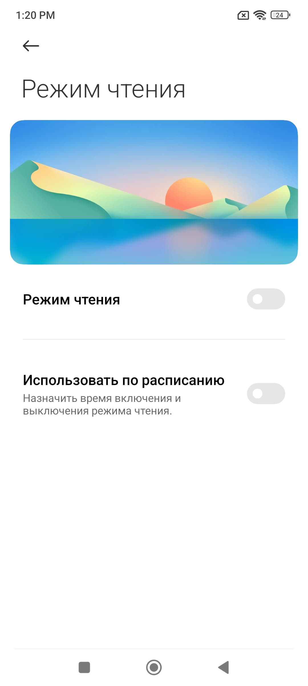 Конечно, есть режим с уменьшенной интенсивностью синей компоненты. Напомним, что, в принципе, яркий свет может приводить к нарушению суточного (циркадного) ритма (см. статью про iPad Pro с дисплеем 9,7 дюйма), но все решается снижением яркости до низкого, но еще комфортного уровня, а искажать цветовой баланс, уменьшая вклад синего, нет абсолютно никакого смысла.