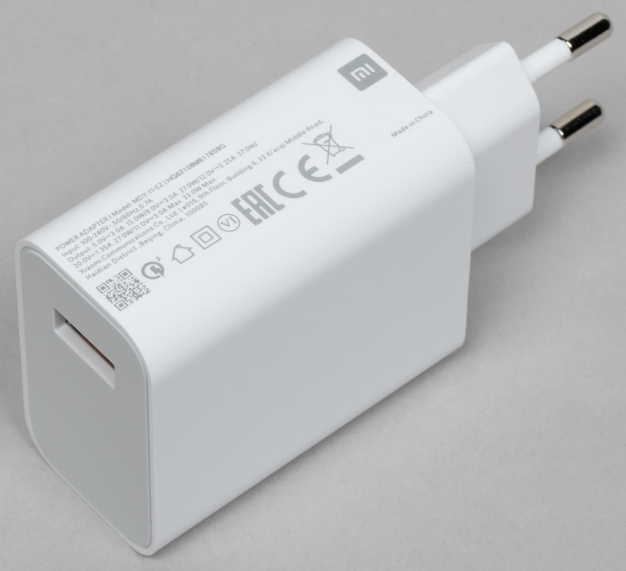 В комплекте со смартфоном идет гибкий прозрачный защитный чехол, соединительный кабель USB-C и сетевое зарядное устройство с максимальной выходной мощностью 33 Вт.