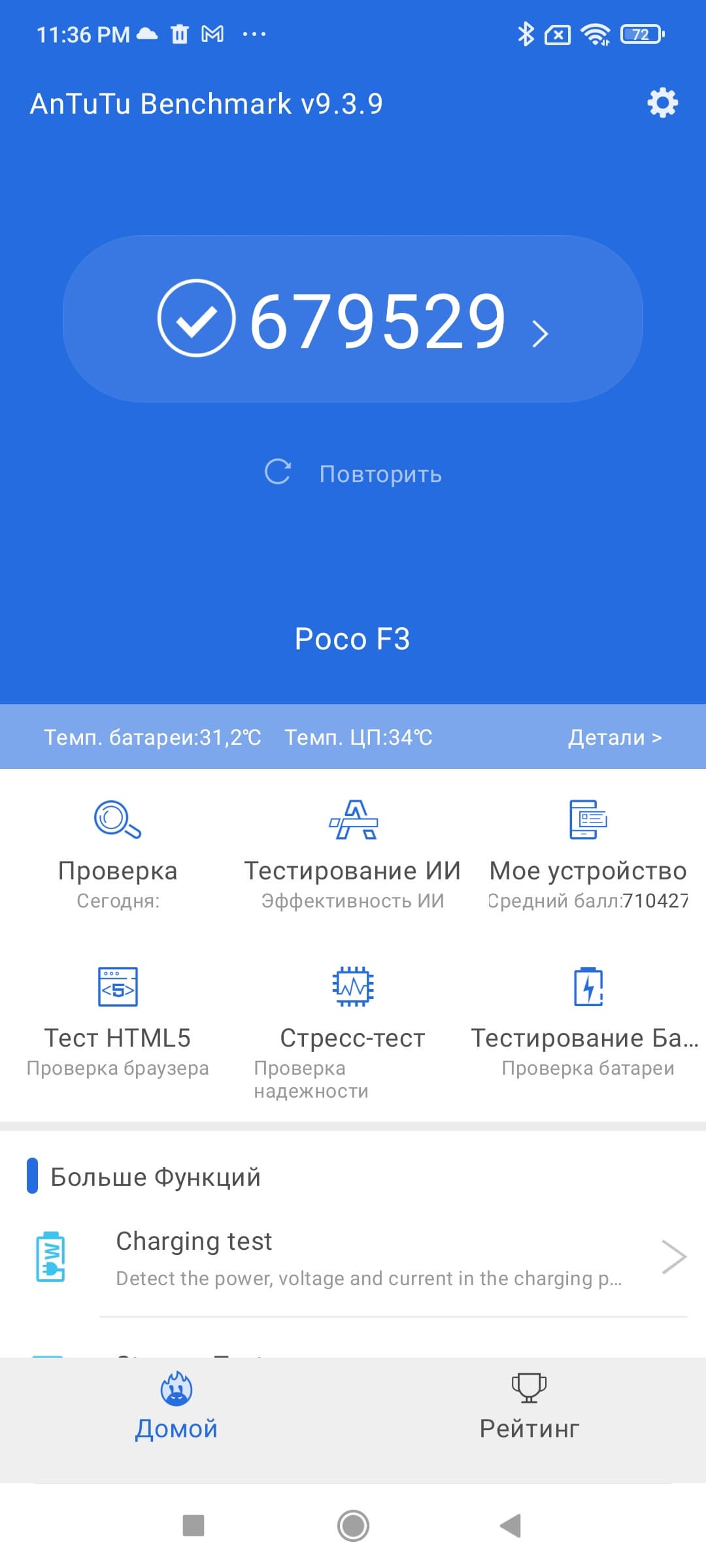 | AnTuTu (v9.x) (больше — лучше) | 679529 | 801412 | 870250 | 651541 | 492381 |