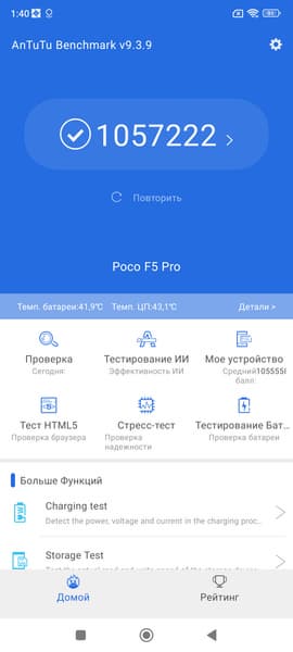 | AnTuTu (v9.x) (больше — лучше) | 1057222 | 1310507 | 788102 | 835915 | 815296 |