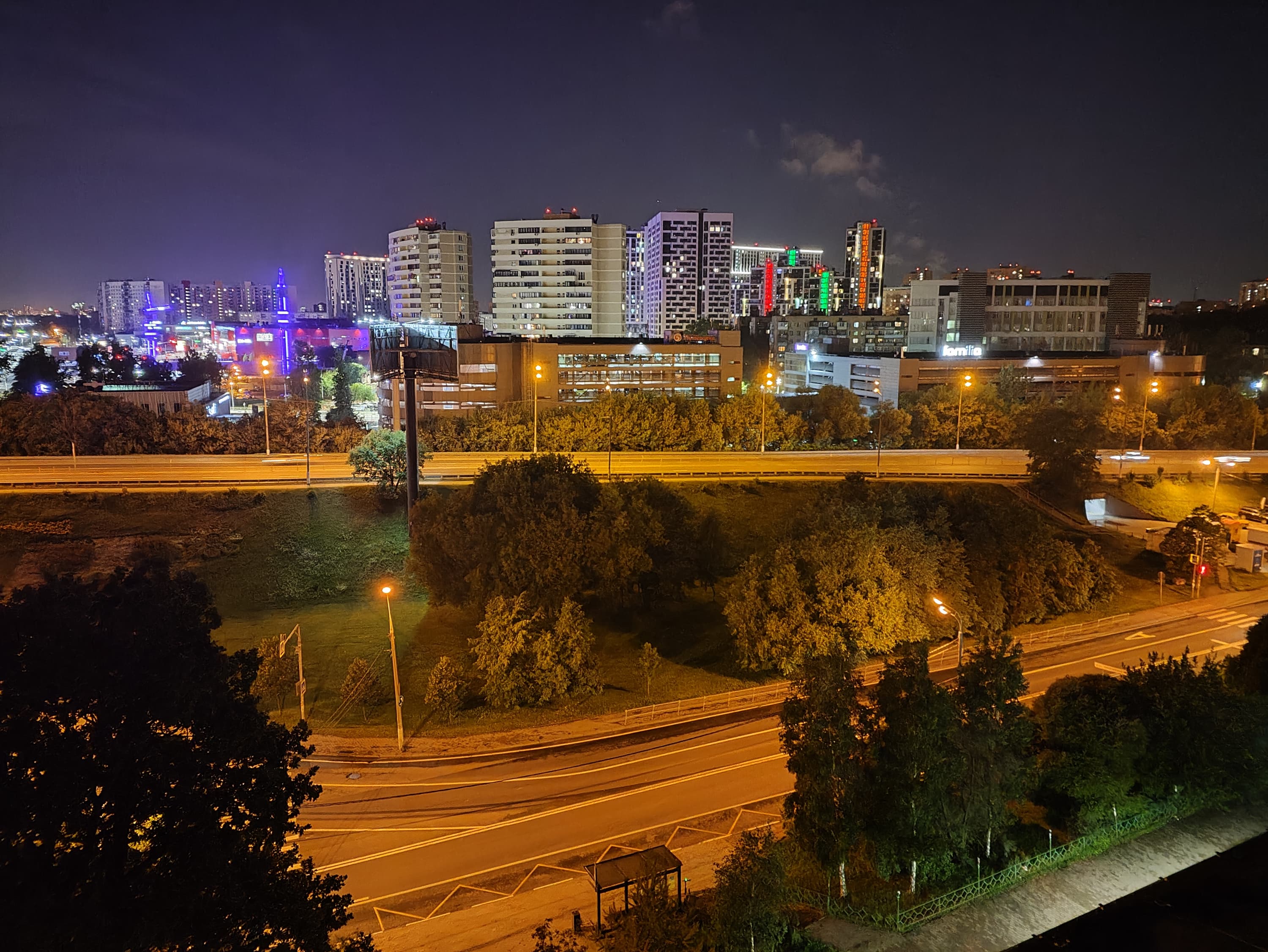 В ночном режиме победить шумы уже не удается, обработчик явно проигрывает в борьбе с ними, и получается совсем уж рыхло и мало деталей в мелких объектах. Цветопередача неестественная, приукрашенная, но ИИ не очень сильно высветляет картинку, оставляет ее ночной. Получается довольно ярко и оригинально, но демонстрировать такие снимки лучше в виде миниатюр.