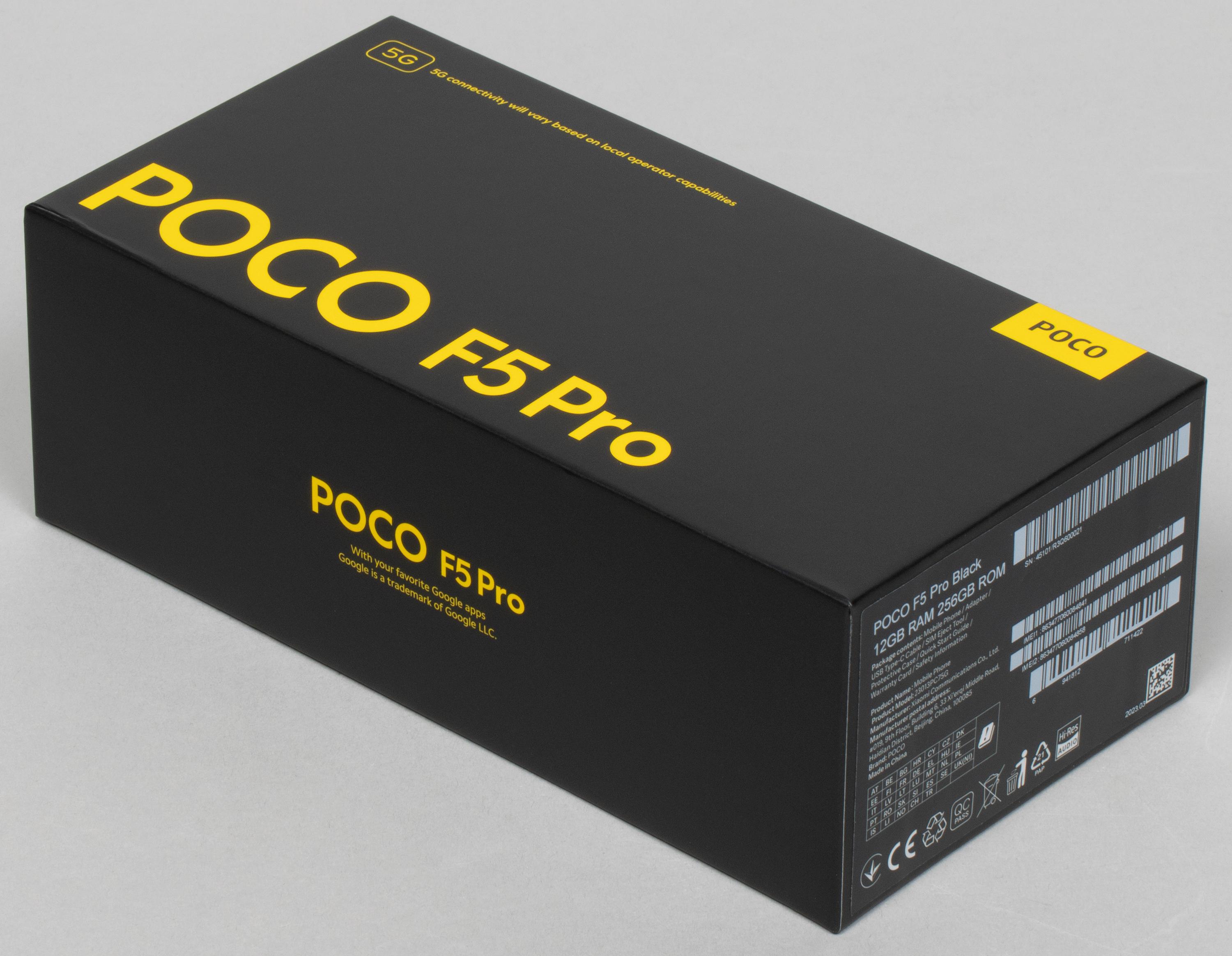 Poco F5 Pro поставляется в твердой картонной коробке со стильным лаконичным оформлением.