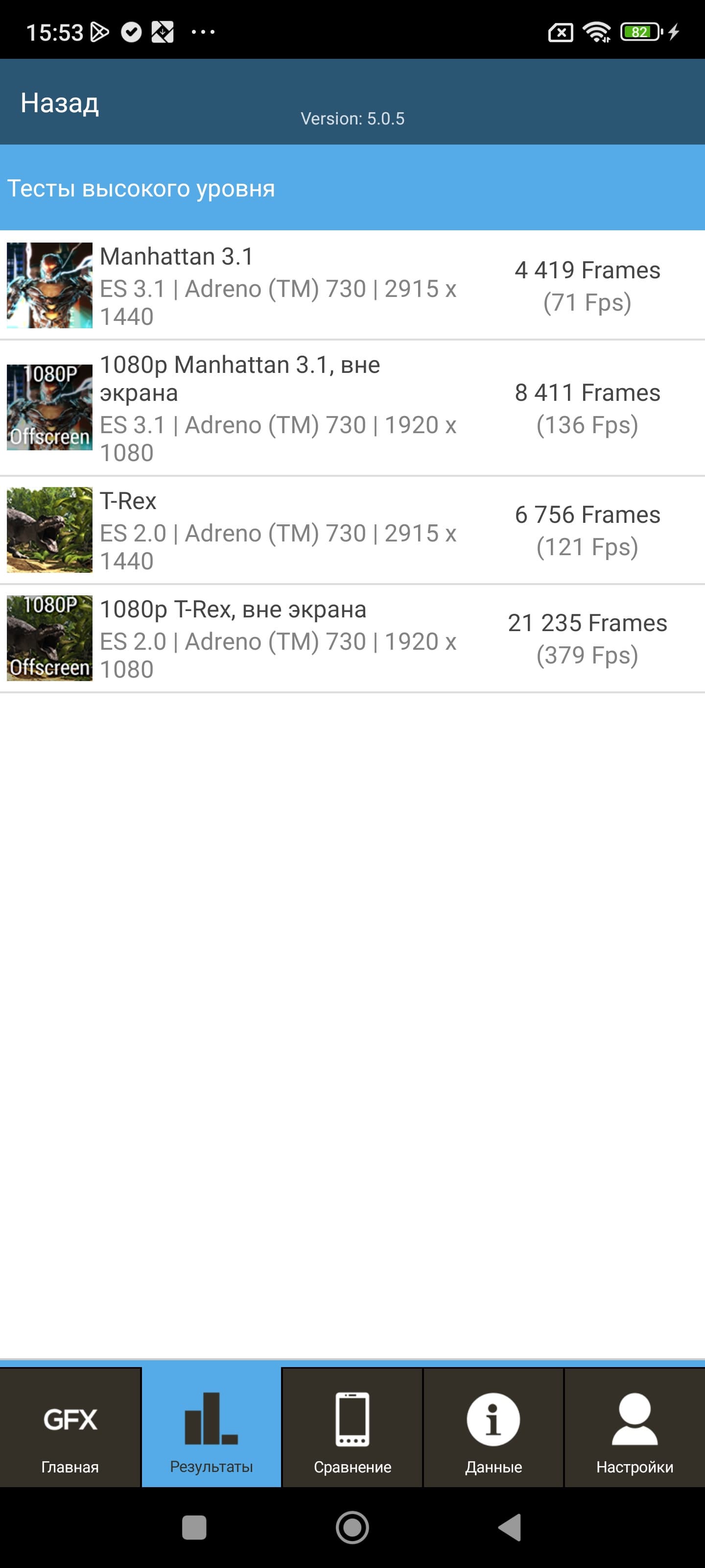 | GFXBenchmark T-Rex (1080p Offscreen, fps) | 379 | 491 | 256 | 274 | 246 |