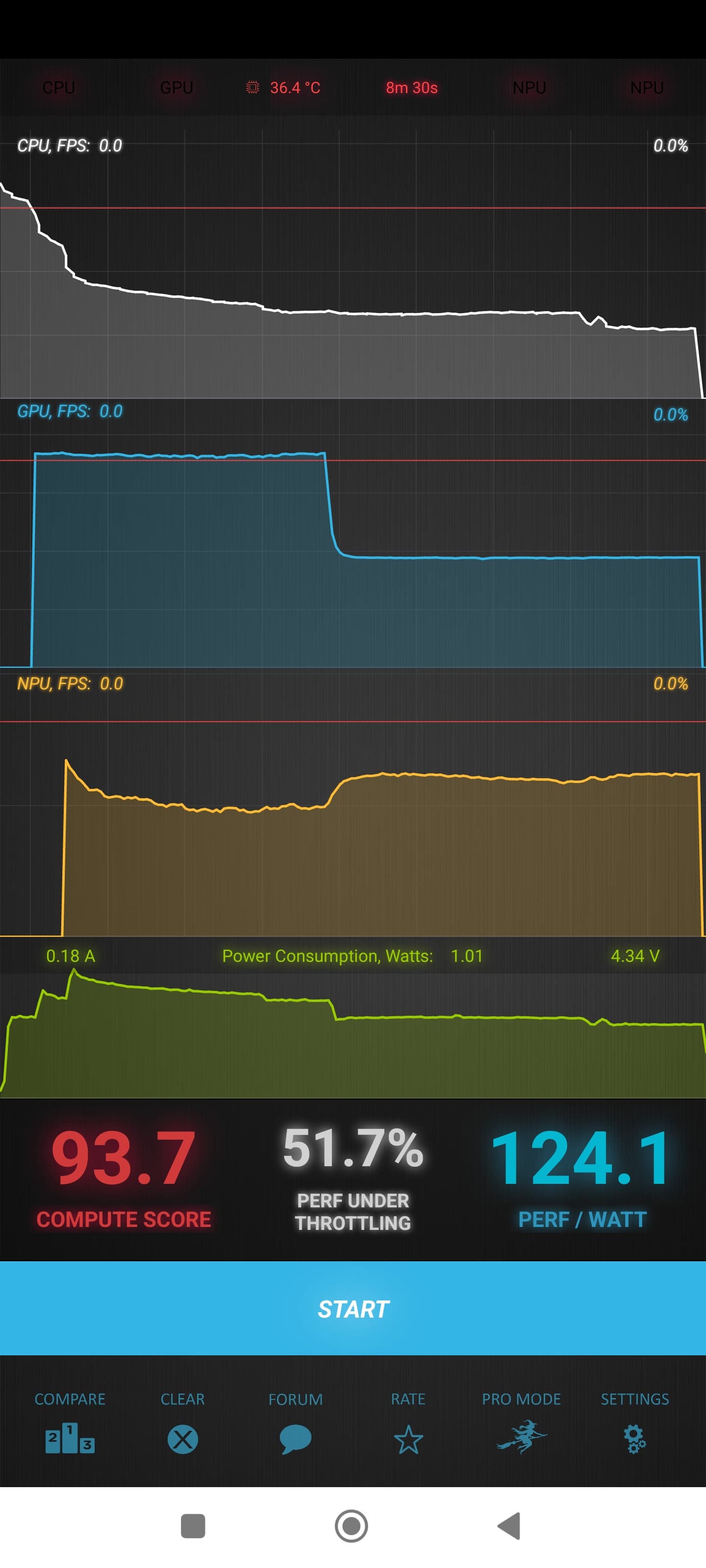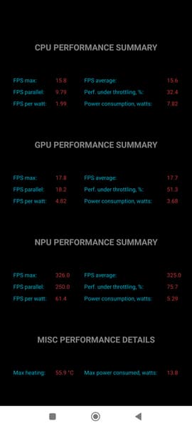 Тест на снижение производительности при нагреве мы проводим с помощью программы Burnout Benchmark, которая позволяет нагружать CPU, GPU и NPU: