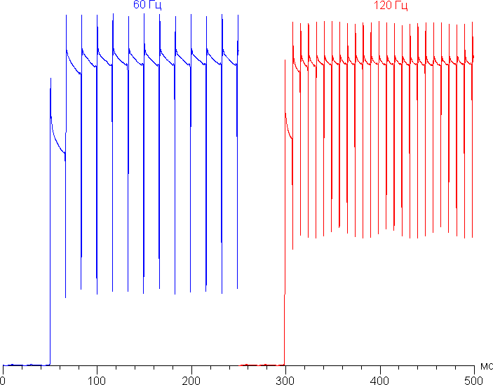 В режиме 120 Гц плавность прокрутки (списков в меню и т. д.) заметно повышается. Посмотрим, изменится ли при этом характер модуляции: