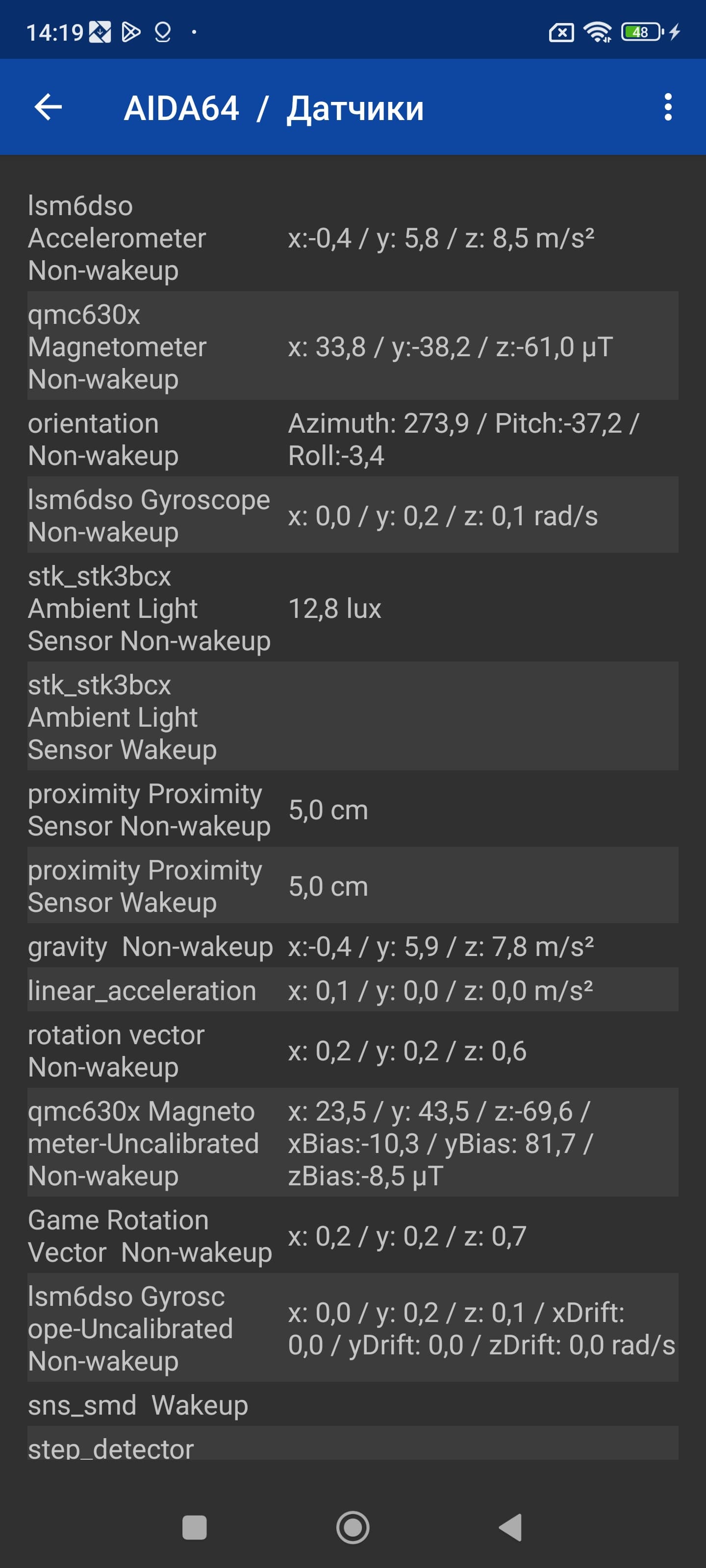 Голос собеседника в динамике отчетливый и громкий. Вибромотор максимально мощный, очень хорошо ощутим. Среди встроенных датчиков имеются все необходимые, вплоть до магнитометра и гироскопа. Нет только барометра.