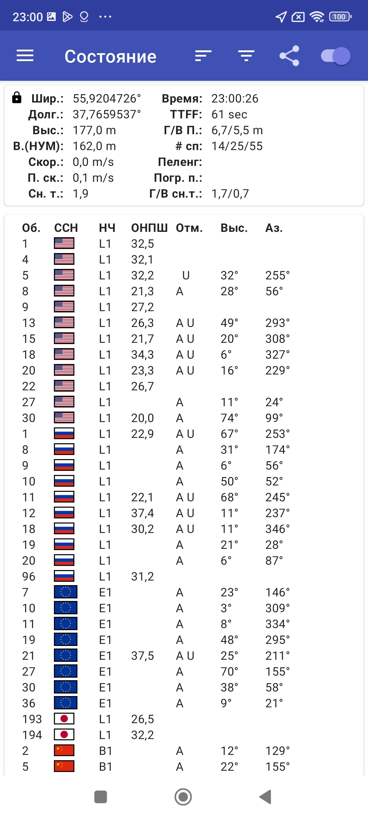 - GPS, Глонасс, BDS, Galileo и QZSS
