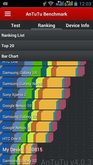 | Prestigio MultiPhone 5300 Duo (Qualcomm MSM8225Q) | LG G2 (Qualcomm Snapdragon 800) | Samsung Galaxy Note3 (Samsung Exynos 5420) | Sony Xperia Z1 (Qualcomm Snapdragon 800) | LG Optimus G (Snapdragon S4 Pro) | |
