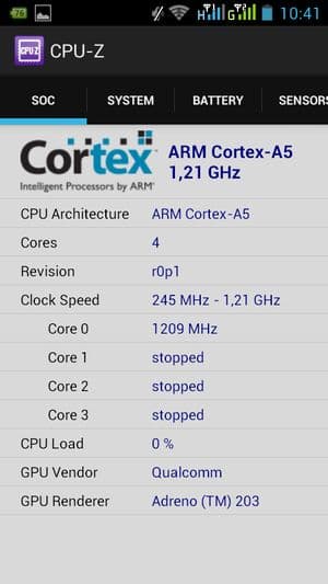 - SoC Qualcomm MSM8225Q, 1,2 ГГц, 4 ядра, ARM Cortex-A5