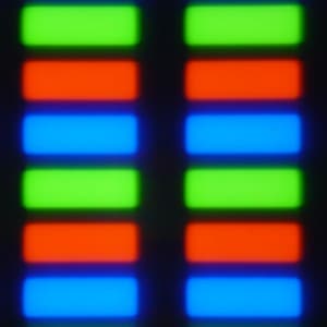 В данном смартфоне установлена матрица типа TN. Микрофотография демонстрирует типичную для TN структуру субпикселей: