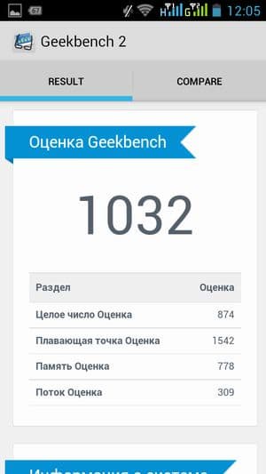 | GeekBench 2 (больше — лучше) | 1032 | 1410 | 1333 | 1427 | 1718 | 1407 |