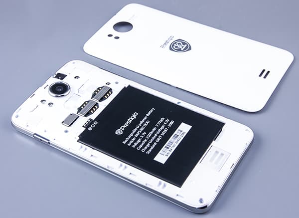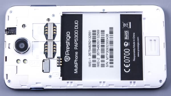 Емкость литий-ионной батареи, установленной в Prestigio MultiPhone 5300 Duo, составляет 2100 мА·ч. Батарея здесь, как уже говорилось, съемная, так что ее можно вынуть и заменить (маркировка батареи — GB/T 18287-2000).