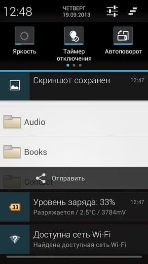 Яркость дисплея имеет как ручную, так и автоматическую регулировку, последняя основывается на работе датчика освещения. Технология мультитач позволяет одновременно обрабатывать до пяти прикосновений — проверено программой AnTuTu Tester. Имеется у смартфона и датчик приближения, который блокирует экран при поднесении смартфона к уху.