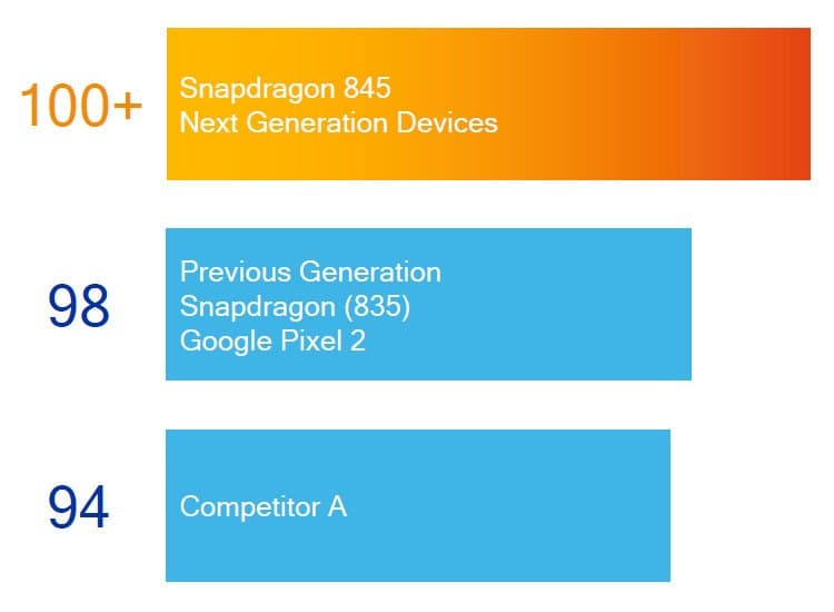 Компания Qualcomm уверена в том, что возможности Snapdragon 845 обеспечат топовым смартфонам 2018 года такое качество фото- и видеосъемки, которое соответствует более чем 100 баллам по известной оценке DxOMark. В принципе, это вполне достижимо, так как смартфон Google Pixel 2 на основе Snapdragon 835 уже набирает в бенчмарке DxOMark 98 баллов.