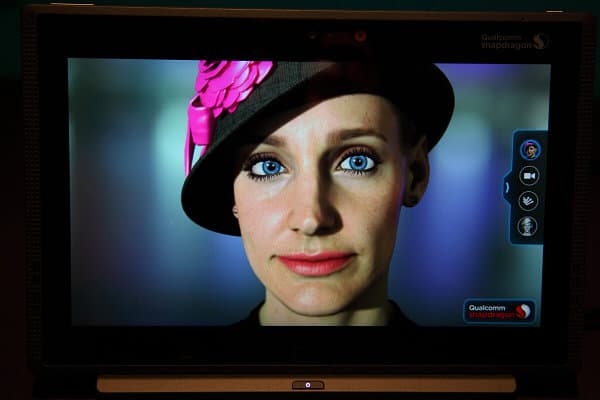 Переходим к демонстрации возможностей 3D-рендеринга на графических ядрах Adreno компании Qualcomm. Компания гордится тем, что их GPU поддерживают почти всю современную 3D-функциональность, которая ранее была доступна только на больших ПК. Например, последние поколения Adreno, вроде модели 430, поддерживают аппаратную тесселяцию геометрии, известную нам по настольным GPU. Для демонстрации тесселяции Qualcomm показали несколько демок, в том числе — отрендеренную в реальном времени женскую голову: