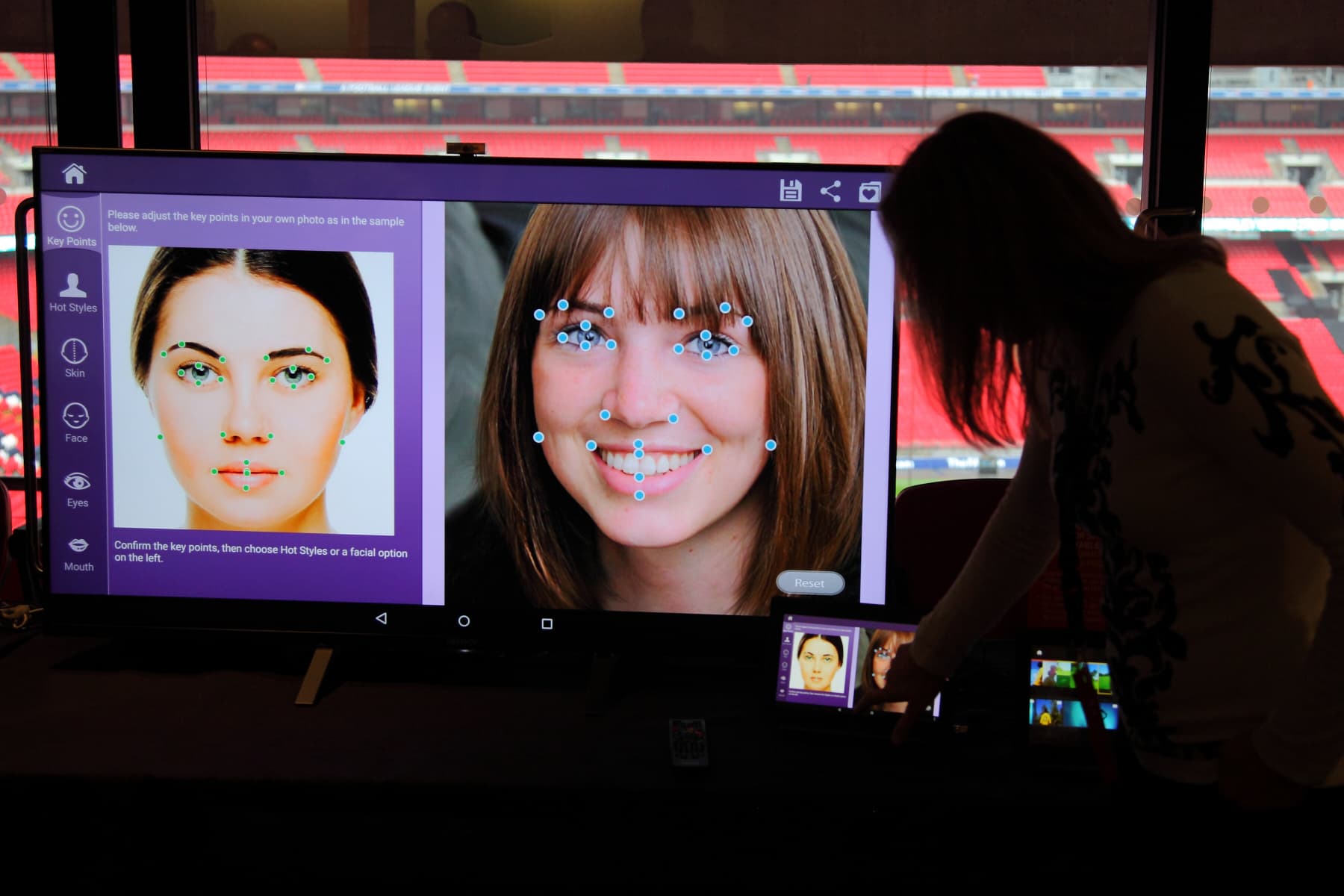 Также в Лондоне нам показывали забавное программное обеспечение для «улучшения» (возможно, тут лучше подойдет англоязычный термин — beautification) фотографий людей, при помощи которого можно изменить формы частей лица, усилить улыбку, «отбелить» зубы, изменить оттенок кожи и помады, цвет, форму и размер глаз и носа, и многое-многое другое — все по желанию пользователя. Для начала надо только задать точки, указывающие на формы частей лица.