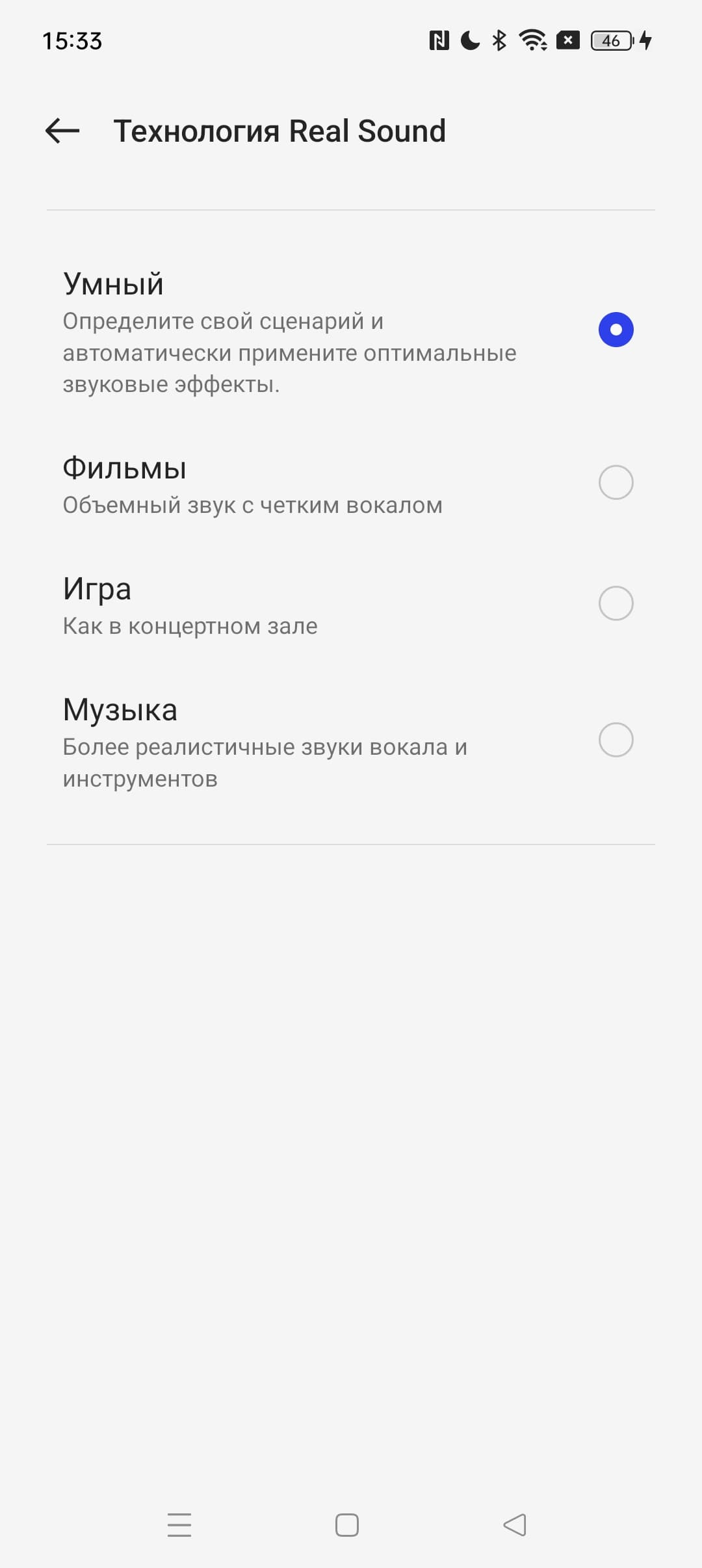 Отсутствие 3,5-миллиметрового аудиовыхода у смартфона такого уровня выглядит надуманно. Стереодинамики есть, но работают они абсолютно по-разному: верхний (разговорный) лишь немного добавляет объема, но он и близко не такой же мощный, как нижний. Да и в целом смартфон звучит средне, преимущественно на высоких частотах, на максимальном уровне похрипывает. Для беспроводных Bluetooth-наушников поддерживаются профили SBC, AAC, aptX, aptX HD, LDAC. В наушниках звук неплохой, но не более того.