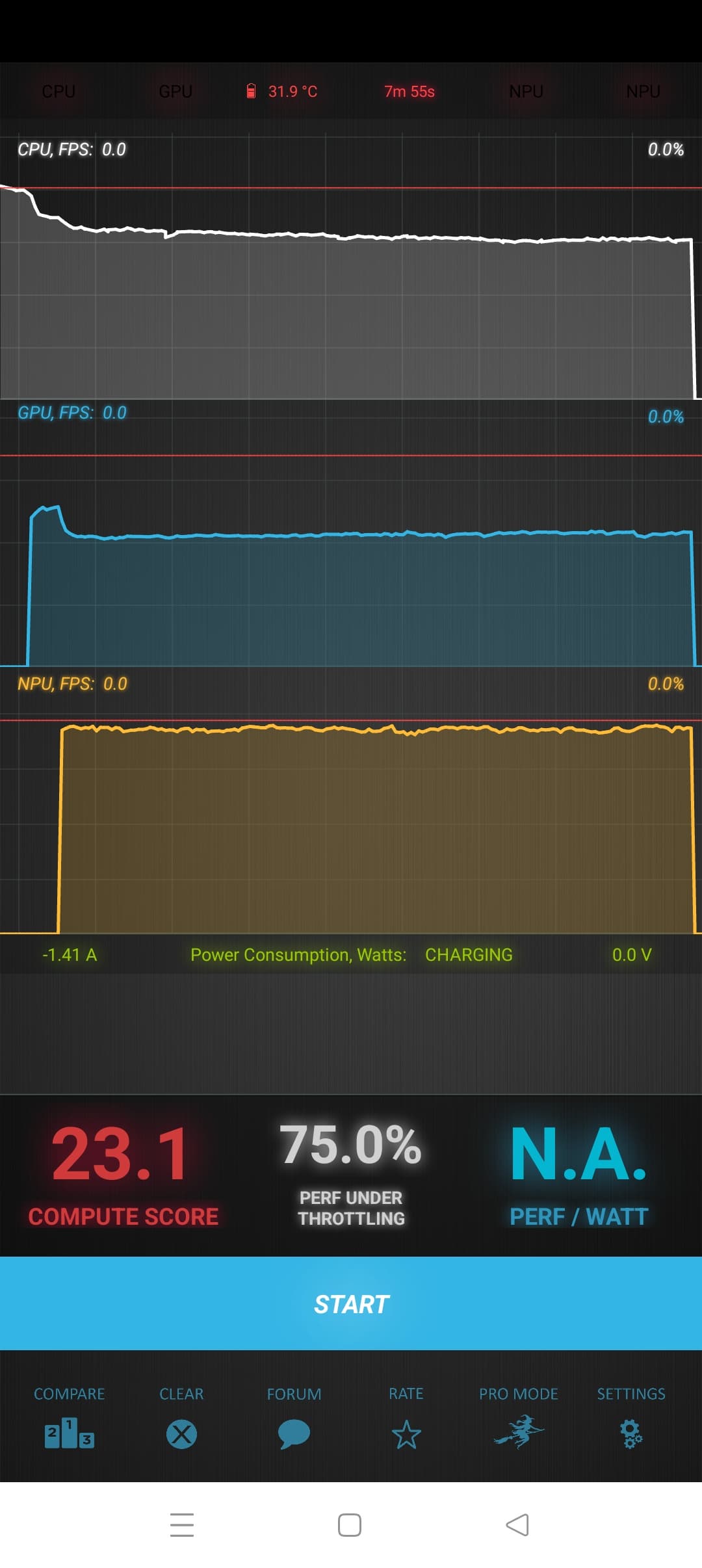 Тест на снижение производительности при нагреве мы проводим с помощью программы Burnout Benchmark, которая позволяет нагружать CPU, GPU и NPU:
