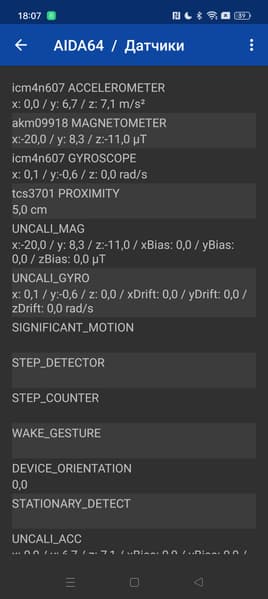 - Датчики приближения и освещения, магнитного поля, акселерометр, гироскоп